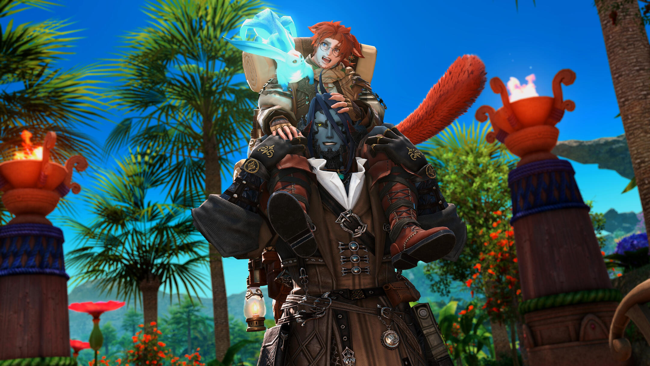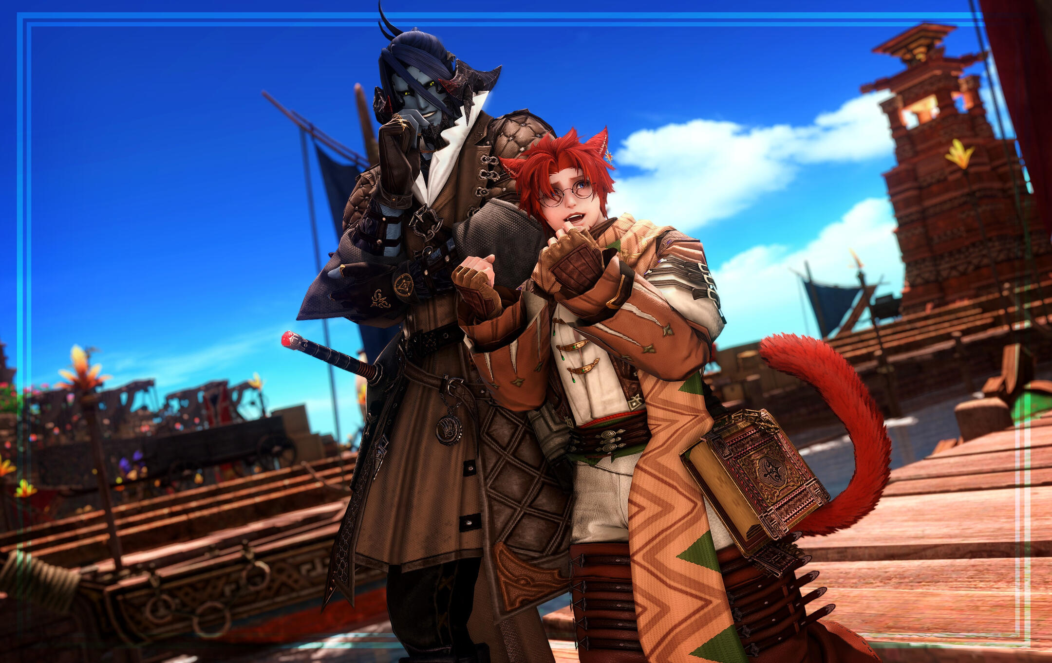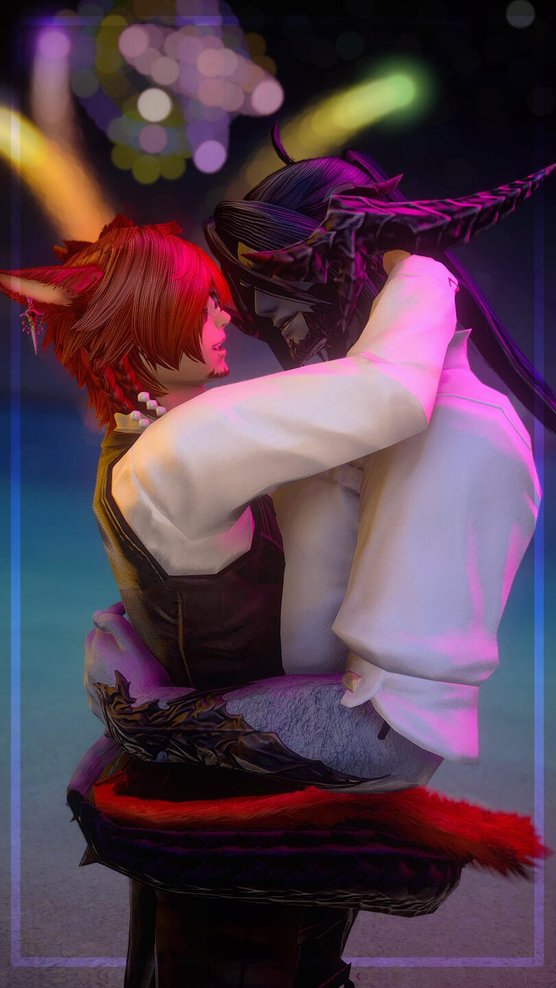 Eventually, the days of study and research in Othard came to a close, and Yuhvi'to decided it was time to return to Hingashi and afterwards back home to Limsa Lominsa. Siban elected that the life debt was still not yet repaid, and thus he accompanied him still, bitterly saying goodbye to his home to make way for stranger shores.Over the several months long travel to Eorzea, Yuhvi'to and Siban kept growing closer and closer to each other, and in due time their friendship blossomed into affection. By the time the two reached the shores of La Noscea, they were no longer simply companions, but lovers.At the age of 31 the two have been together for three years, bonded, no longer beholden to one another over a life's debt, but rather a soulful adoration that one would perhaps deem was mandated by a time before time, when the world was yet Unsundered.Now, the two accompany each other still, inseperable, adventuring together for gil to assist the Miqo'te's endless research and development of Teratomimesis. Still, the call of foreign knowledge tug at the Miqo'te's mind as news about a 'Masked Carnivale' spread across Eorzea. And while Yuhvi'to is hardly interested in gladitorial spectacle, the root of the Whalaqee tribe's 'Blue Magic' itself sounds like it would provide profound help to his own research. Thus, a new expedition is slowly starting to be in the plans, a trip to the New World where perhaps the Miqo'te could find the catalyst to solidifying his magical art, for good.